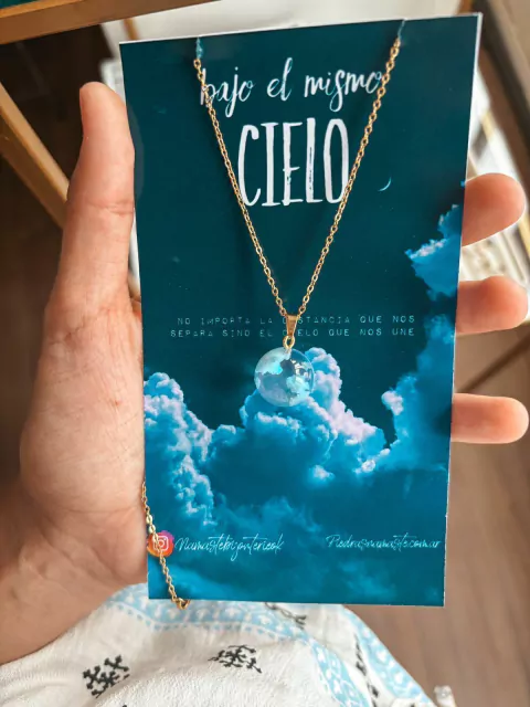 Collar BAJO EL MISMO CIELO celeste (acero dorado) 16 mm