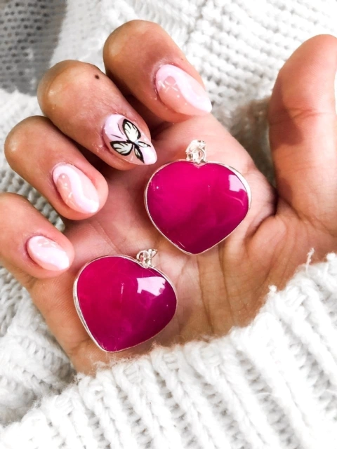CORAZÓN ÁGATA ROSA CON VIROLA X2 U.
