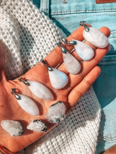 Lleva tu adularia en todo momento en contacto con tu piel. Elegí en la tercera foto la pieza que más te atraiga.